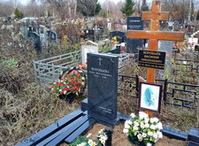 На данном участке был проведён сравнительно большой объём работ. Первым делом были убраны сорные растения и сухостой, заполонившие место захоронения. После этого мы помыли и протёрли весь гранит. Далее установили по центру участка вазы, наполнили их водой и поместили внутрь свежие цветы. Для удобства оценки качества проведённой работы мы сфотографировали убранное место захоронения с разных ракурсов.
