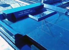 Подобрали нужный материал-чёрный Мурманский гранит. Выполнили каменотесные работы и отполировали камень до блеска.