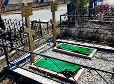 Уборка могилы с двумя крестами
